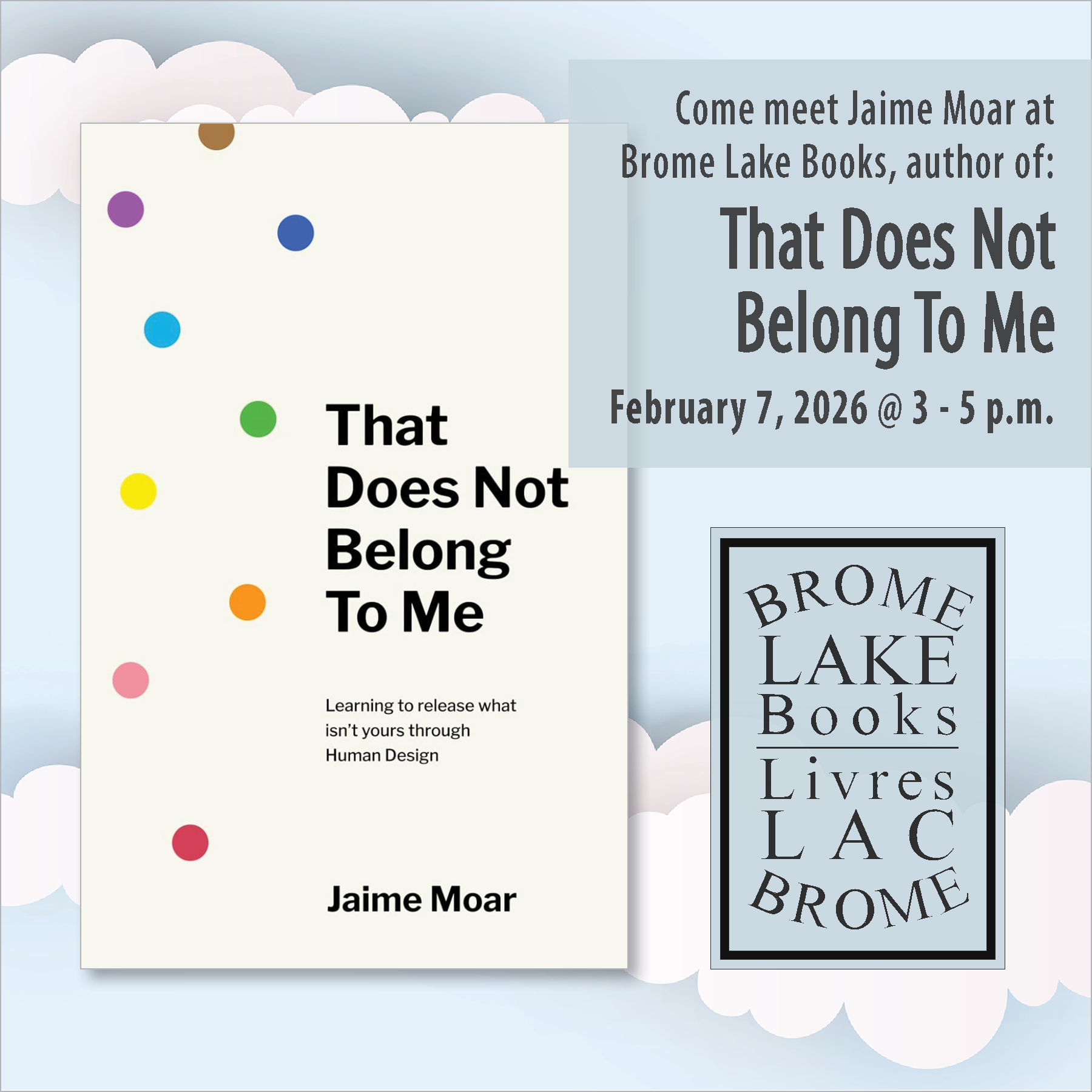 Jaime Moar is a yoga teacher, coach, and entrepreneur born and raised in Knowlton. She will be at Brome Lake Books on Saturday February 7, 2026 from 3 - 5 p.m., to talk about her eagerly awaited book: THAT DOES NOT BELONG TO ME.