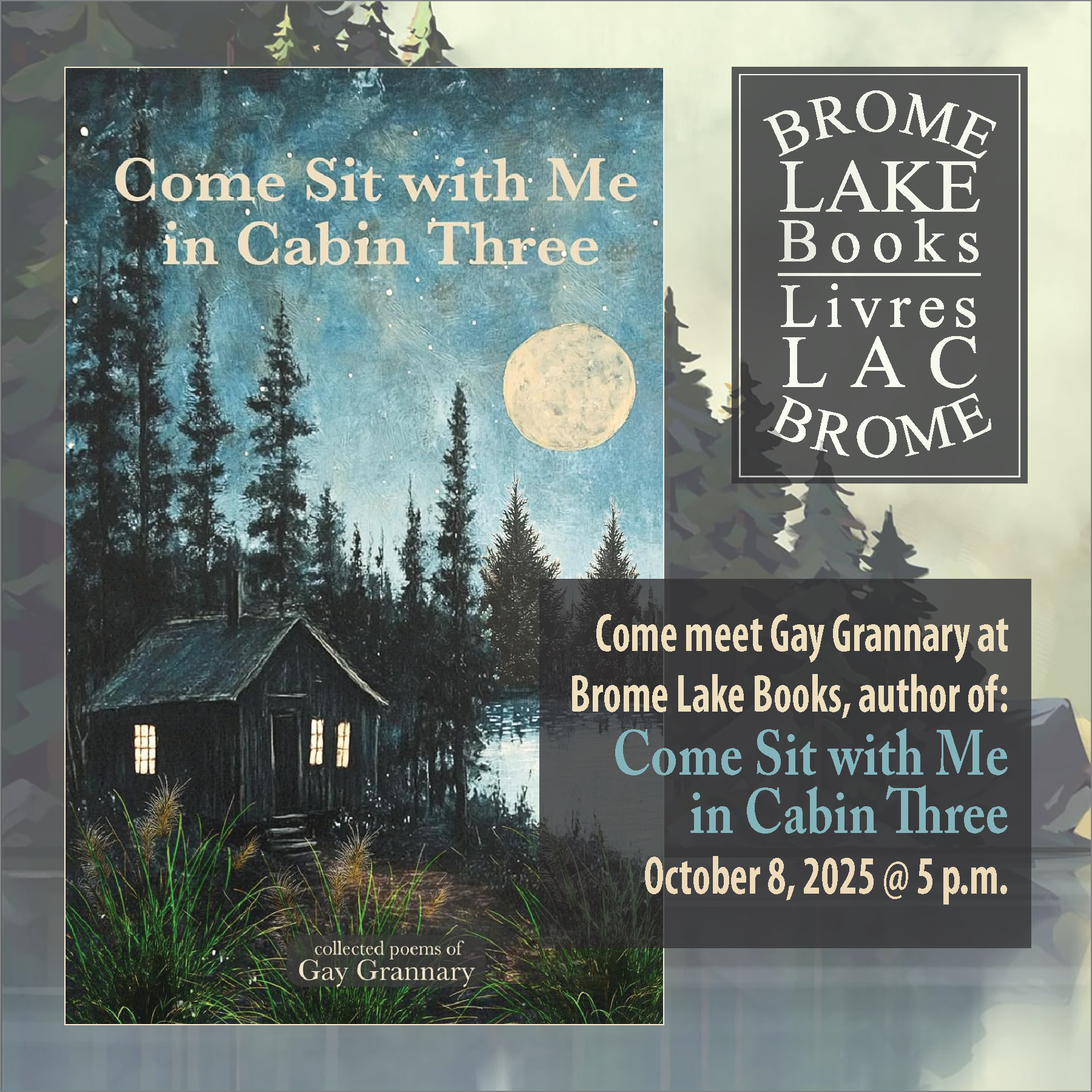 Author Gay Granary will be at Brome Lake Books on Saturday November 8, 2025 at 5 p.m., talking about her collection of poems titled: COME SIT WITH ME IN CABIN THREE - Let’s share a cup of hibiscus tea and savour some chocolate roses.